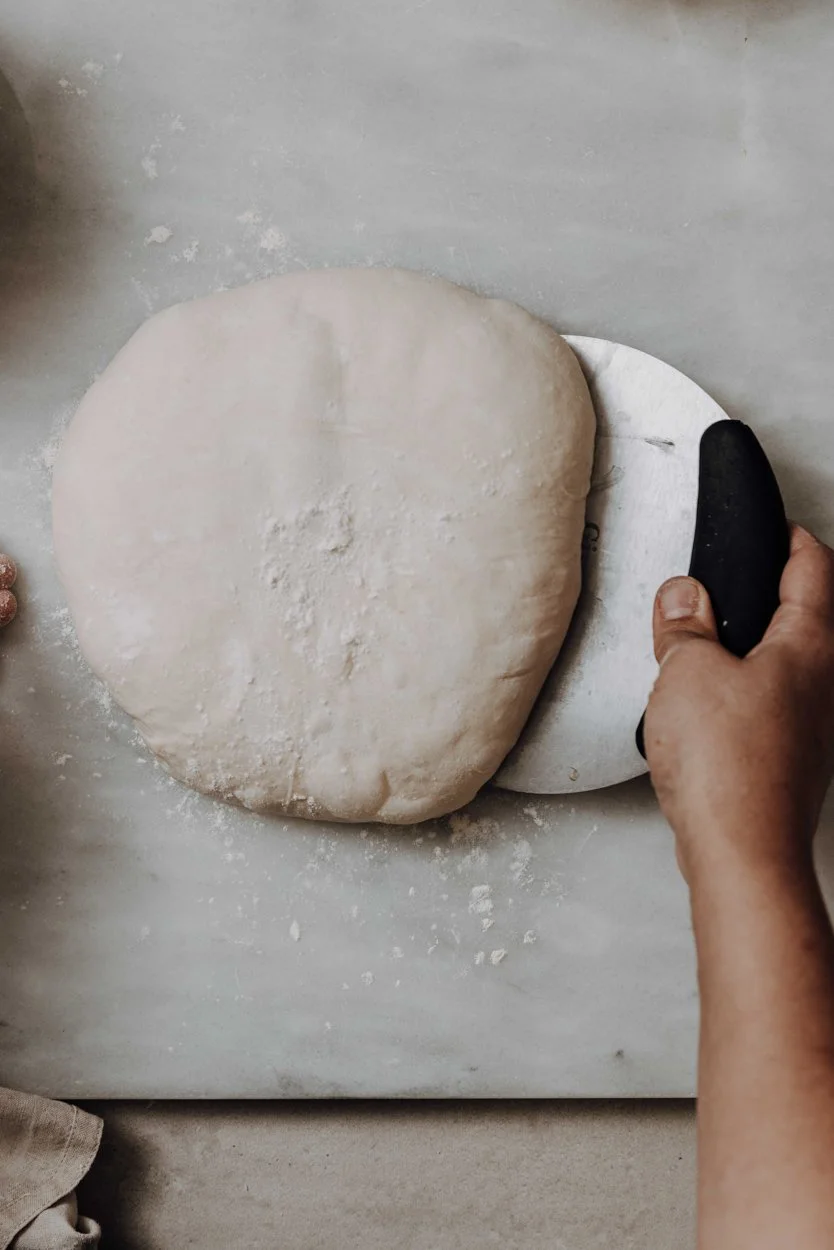 Wenig Mehl: Benutze nur so viel Mehl wie nötig, damit der Teig nicht festklebt. Beim Wirken solltest du kein Mehl in den Teigling einarbeiten.