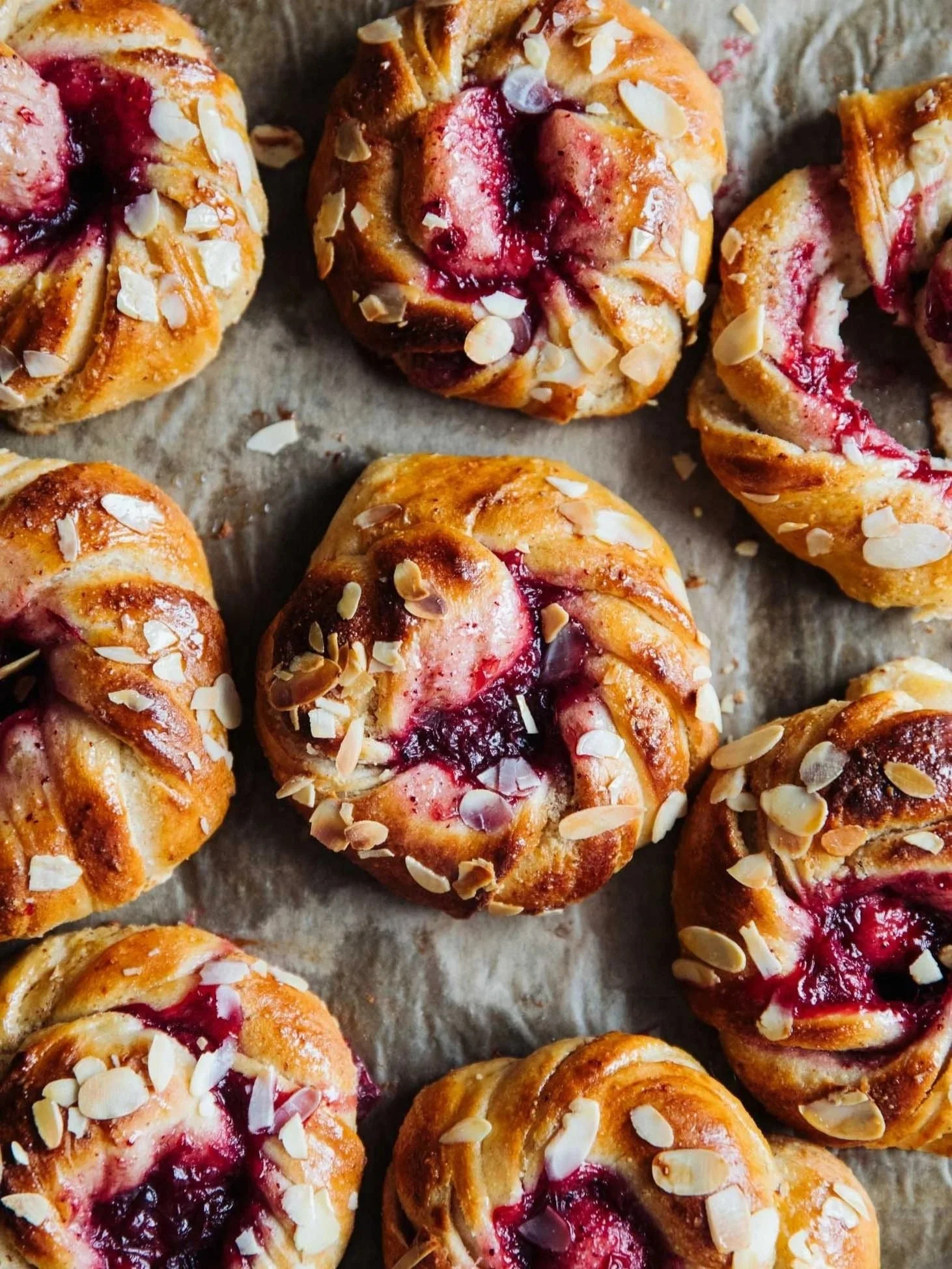 Selbstverständlich kannst du auch andere Marmeladen verwenden und entsprechend ans Gebäck anpassen. Denn die Konfitüre wird ein bisschen zu schmecken sein. Mögliche Alternativen sind Quittengelee, Orangenmarmelade oder Ananaskonfitüre.
